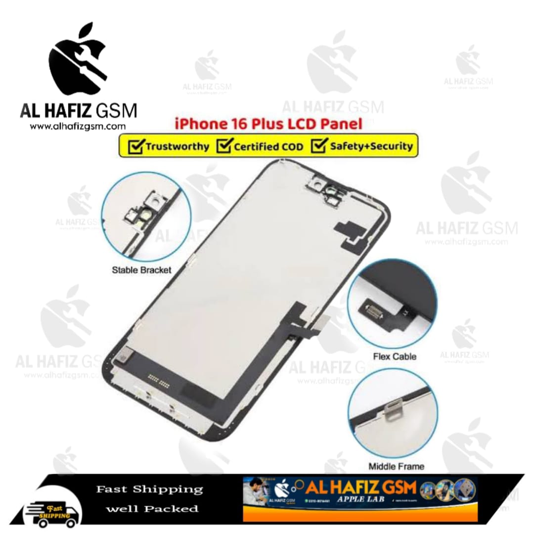 The iPhone 16 Plus features a large 6.7-inch Super Retina XDR display with OLED technology. It is an all-screen design, though the actual viewable area is slightly less due to the rounded corners. The panel is known for its high brightness and wide color support.